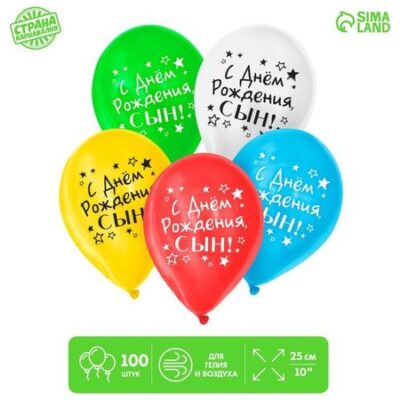 Шар латексный 12 Страна Карнавалия С Днем Рождения сын набор цвета микс
