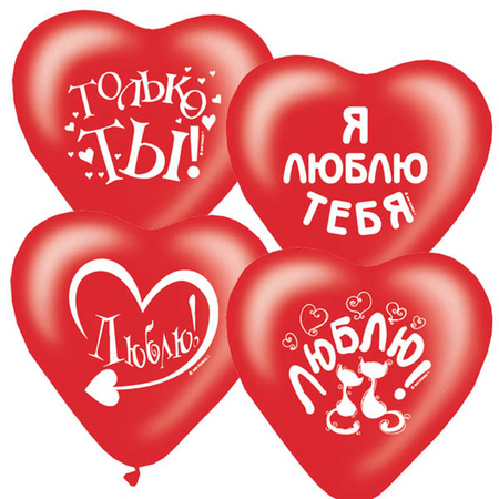 Шар Latex Occidental латексный «Я тебя люблю», сердце ассорти, набор 25 шт цвет ярко-красный