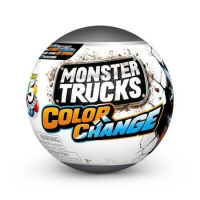 Распаковывайте, стройте, сражайтесь и участвуйте в гонках с машинами-монстрами от 5 Surprise Color Change от ZURU. Эти грузовики-монстры оснащены настоящим огнестрельным оружием, которое стреляет на расстояние до 1,5 метров! У каждого грузовика есть сменные бамперы и вооружение, так что вы сможете создать свою уникальную боевую машину. Вам предстоит собрать 7 грузовиков-монстров, каждый из которых обладает способностями к изменению цвета и жаждой скорости. Собери их всех!ВНИМАНИЕ! Конкретный вариант товара станет известен только после покупки и вскрытия упаковки (сюрприз).