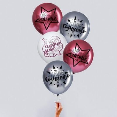 Шар Страна Карнавалия латексный «С днем рождения, малышка» 5 шт хром