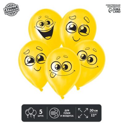 Шар воздушный Страна Карнавалия 12 «Улыбки, мордочки», 1-сторонний, набор 5 шт, микс