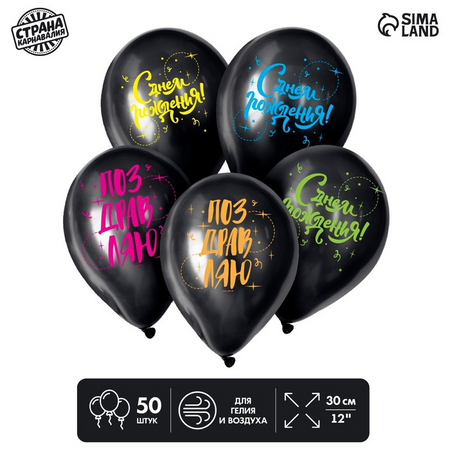 Шар воздушный Страна Карнавалия «С Днем рождения!», набор 50 шт черные микс