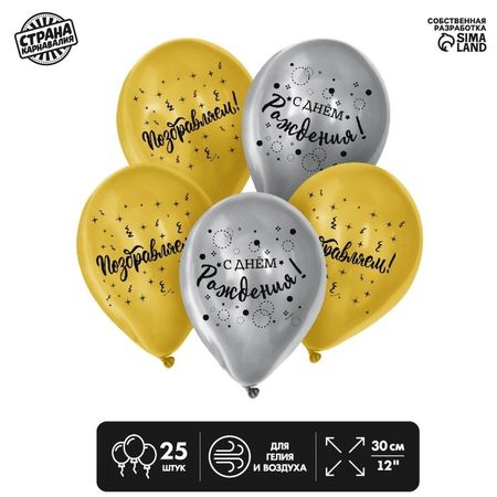 Шар воздушный Страна Карнавалия «С днем рождения», поздравляем, 1 ст., в наборе 25 шт