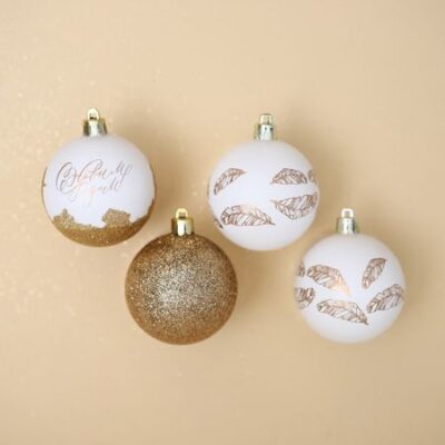 Главная » Товары для детей Шары елочные Просмотров 4 Шары елочные «С Новым годом!», пластик, d=6, 4 шт., белые, золотые. Сима-ленд