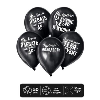 Шары воздушные Страна Карнавалия Оскорбительные , набор 50 шт , цвет черный