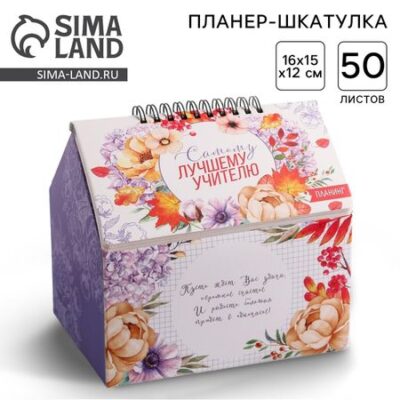 Шкатулка — домик «Самому лучшему учителю», планер 50 листов, 16×15×12 см. Планер — шкатулка поможет фиксировать важную информацию и интересные идеи, а так же станет прекрасным подарком на любой праздник. <ul> <li> Форма: прямоугольник ;</li> <li> Количество листов: 50 ;</li> <li> Особенности: дизайнерский блок ;</li> <li> Тип скрепления: на гребне ;</li> <li> Упаковка: пакет.</li> </ul>