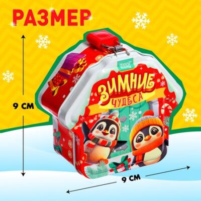 Шкатулка-копилка новогодняя с замком «Зимние чудеса» 2 в 1, внутри мялка и бусы. Игрушка-сюрприз «Зимние чудеса» — очаровательный подарок для детей. Такой набор создаст праздничную атмосферу волшебства и подарит радостные эмоции. Яркая и красочная шкатулка научит девочку аккуратности и бережному отношению к украшениям. В набор входят милый антистресс-мялка в виде милого пингвиненка и ожерелье для маленьких модниц. <b> Особенности</b> <ul> <li> Продукт сертифицирован и соответствует всем стандартам качества и безопасности.</li> <li> Шкатулка-копилка научит ребенка ответственности и поможет накопить денежную сумму на любую мечту.</li> <li> В комплект входит замок с ключиком.</li> </ul> Игрушка-сюрприз «Зимние чудеса порадует девочку и разовьет воображение.