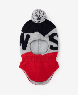 Жаккардовый шлем, выполненный из пряжи трех цветов с добавлением шерсти и кашемира – мягкая и уютная вещь, способная защитить мальчика от непогоды и ветра. Шлем имеет усиление в районе ушей ребенка, гарантирующее тепло.