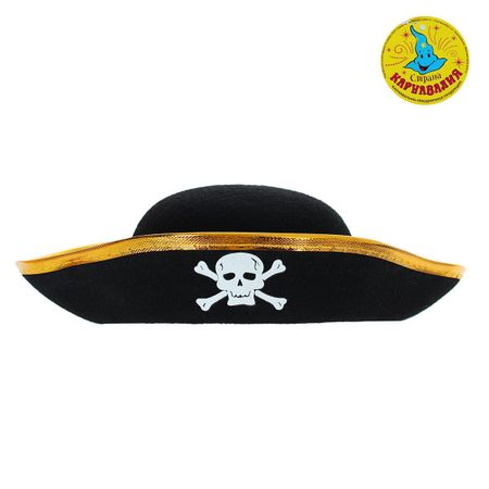 Шляпа пиратская, детская, золотистая каемка, р-р. 50. Уже давно мечтаете перевоплотиться в настоящего пирата для костюмированной вечеринки, но не знаете где приобрести подходящий костюм, а главное по доступной цене. Компания Сима-ленд — вот ответ на ваш вопрос. Шляпа пиратская, детская, золотистая каемка, р-р. 50 отличное дополнение к вашему образу. Мы предлагаем для вас множество вариантов, как эффектно появиться на вечеринке в образе пирата. Кинжал, костюм, бандана, попугай на плече и бутылка рома в руках – вот составляющие образа морского разбойника. Но все же шляпа остается важной деталью в образе.