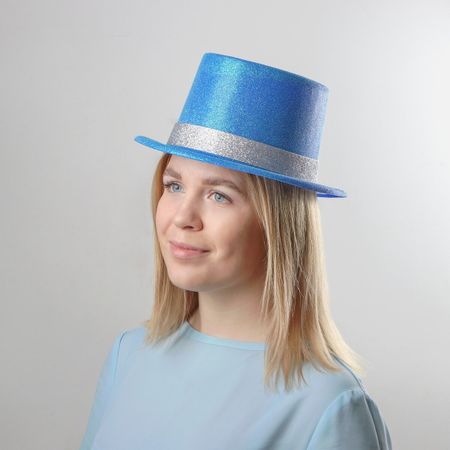 Шляпа пластиковая «Фееричный цилиндр», р-р. 56, синяя. Планируете тематическую вечеринку? Карнавальная шляпа подойдет для любого праздника! Такая форма универсальна. Этот аксессуар за считанные секунды позволит с головой окунуться в придуманный образ. Пластиковая мини-шляпка подойдет для взрослых и детей. Сочетайте ее с любыми нарядами и будьте всегда в центре внимания!