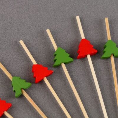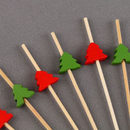 Шпажки для канапе новогодние «Ёлочки», в наборе 12 шт.. Набор шпажек «Ёлочки» — это стильное украшение для вашего праздничного стола. Эти шпажки с новогодней тематикой добавят атмосферы праздника к закускам, канапе и десертам. Они идеально подойдут для новогодних вечеринок, фуршетов и домашних встреч. <b> Особенности набора</b> <ul> <li> В наборе 12 шпажек длиной 12 см, каждая выполнена в виде елочки зеленого и красного цветов.</li> <li> Изготовлены из безопасных материалов: деревянная основа и бумажные украшения.</li> <li> Шпажки идеальны для сервировки закусок, десертов или маленьких канапе.</li> </ul> <b> Практично и празднично</b> Эти декоративные шпажки легко украсят ваш стол и помогут сделать закуски более привлекательными и аппетитными. Они также прекрасно вписываются в любую праздничную сервировку на Новый год.