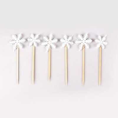 Шпажки для канапе новогодние «Снежинки» набор 6 шт.. Шпажки станут стильным украшением праздничных и повседневных блюд. Они идеально подойдут для закусок: маленьких бутербродов, пирожков, салатов, добавят пикантности фруктам и десертам. С такими аксессуарами угощения будут выглядеть еще аппетитнее, а стол ярче. Удивляйте не только вкусом, но и креативной подачей блюд!