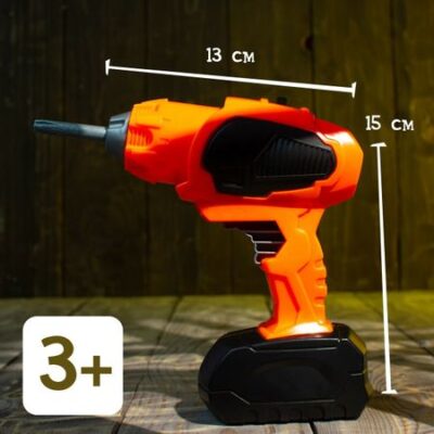 Шуруповерт «Умелец Я», работает от батареек. Шуроповерт — универсальный инструмент, который пригодится для проведения многих видов ремонтных работ. С таким прибором ребенок станет настоящим папиным помощником. В набор входит шуруповерт и две насадки: сверло и плюсовая. Игрушка механическая и функционирует от 2 батареек типа АА (приобретаются отдельно). Все элементы имеют скругленные края и не нанесут вреда малышу. Сделано из высококачественного пластика, гипоаллергенного и безопасного для здоровья ребенка. Для детей от 3 лет.