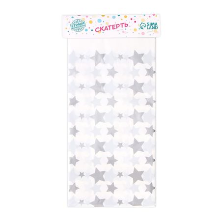 Скатерть «Звезды», 137х220 см, цвет серебряный. Скатерть со звездами станет отличным украшением праздничного стола! Яркая расцветка и тематический дизайн добавят сервировке торжественных ноток и разбудят аппетит. Скатерть удобна в использовании: с нее легко удалять пятна, а после застолья не нужно стирать — достаточно просто протереть. Нарядное оформление стола позволит всем гостям настроиться на позитивную волну. <b> Особенности</b> <ul> <li> Размер скатерти: 137 × 220 см. Она подходит для большинства столов стандартных размеров.</li> <li> Скатерть сделана из полиэтилена.</li> </ul> Используйте скатерть со звездами на различных торжествах: будь то день рождения, Новый год, тематическая вечеринка или другое интересное мероприятие. Ее дизайн внесет в ваш праздник особую атмосферу и она станет стильным дополнением интерьера.