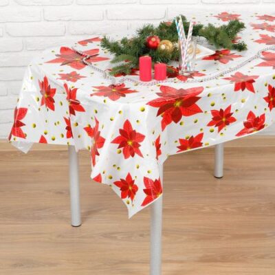 Скатерть новогодняя одноразовая «Праздничное настроение», 108х180 см. Скатерть станет настоящим украшением праздничного стола! Яркая расцветка и тематический дизайн добавят сервировке торжественных ноток и разбудят аппетит. Скатерть из ПВХ удобна в использовании: с нее легко удалять пятна, а после застолья не нужно стирать — достаточно просто протереть. Такое нарядное убранство позволит всем гостям настроиться на позитивную волну!