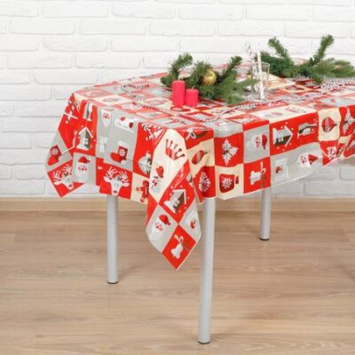 Скатерть новогодняя одноразовая, размер 108х180 см. Скатерть станет настоящим украшением праздничного стола! Яркая расцветка и тематический дизайн добавят сервировке торжественных ноток и разбудят аппетит. Скатерть из ПВХ удобна в использовании: с нее легко удалять пятна, а после застолья не нужно стирать — достаточно просто протереть. Такое нарядное убранство позволит всем гостям настроиться на позитивную волну!
