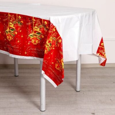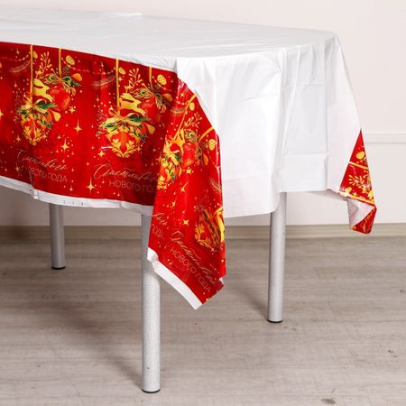 Скатерть одноразовая «Счастливого нового года», 137 х 180 см. Новогодняя скатерть идеальное решение для вашего праздничного стола. Изготовленная из высококачественного полипропилена, она обладает прочностью и водоотталкивающими свойствами, что гарантирует надежную защиту вашего стола от загрязнений и пятен. Одноразовая новогодняя скатерть — это удобный и практичный вариант для тех, кто ценит комфорт и уют во время празднования Нового года.