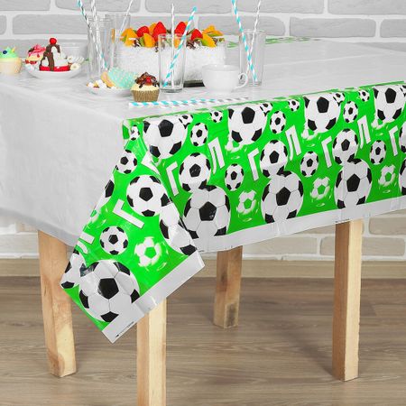 Скатерть одноразовая «Футбол», 180х137 см. Подойдите к сервировке праздничного стола с фантазией и энтузиазмом, воспользовавшись яркими аксессуарами. Изделие выполнено из клеенки и покрыто красочным принтом по бокам. Центр скатерти белый. Такой материал очень практичен, ведь с него легко можно убрать загрязнения, если вы что-нибудь уроните или прольете на стол.