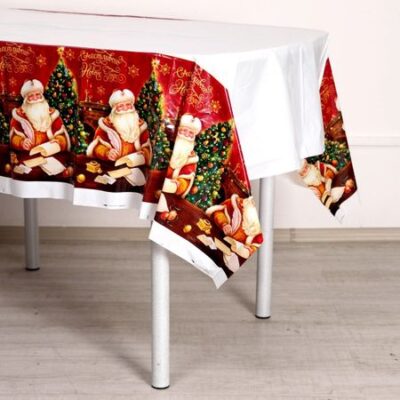 Скатерть одноразовая «Счастливого Нового Года», Дед Мороз, 182 х 137 см. Скатерть станет настоящим украшением праздничного стола! Яркая расцветка и тематический дизайн добавят сервировке торжественных ноток и разбудят аппетит. Скатерть из ПВХ удобна в использовании: с нее легко удалять пятна, а после застолья не нужно стирать — достаточно просто протереть. Такое нарядное убранство позволит всем гостям настроиться на позитивную волну!