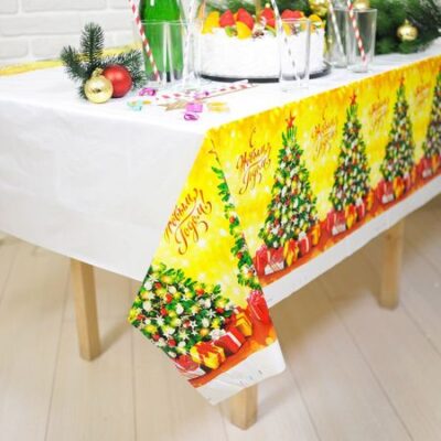 Скатерть одноразовая «С Новым Годом», 180×137 см. Скатерть станет настоящим украшением праздничного стола! Яркая расцветка и тематический дизайн добавят сервировке торжественных ноток и разбудят аппетит. Скатерть из ПВХ удобна в использовании: с нее легко удалять пятна, а после застолья не нужно стирать — достаточно просто протереть. Такое нарядное убранство позволит всем гостям настроиться на позитивную волну!