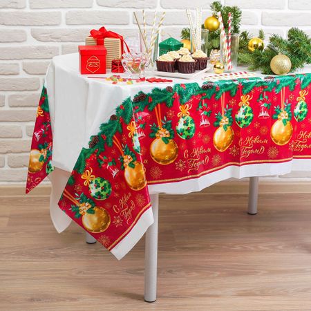 Скатерть одноразовая «С Новым годом», 182×137 см. Скатерть станет настоящим украшением праздничного стола! Яркая расцветка и тематический дизайн добавят сервировке торжественных ноток и разбудят аппетит. Скатерть из ПВХ удобна в использовании: с нее легко удалять пятна, а после застолья не нужно стирать — достаточно просто протереть. Такое нарядное убранство позволит всем гостям настроиться на позитивную волну!