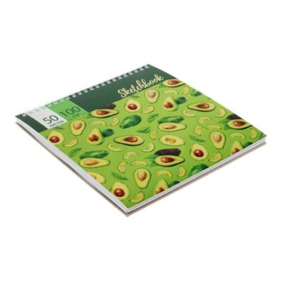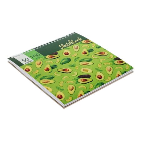 Скетчбук Calligrata, 195 х 195 мм, 50 листов, твердая обложка, "Авокадо", металлизированный картон с объемным рисунком, блок 100 г/м2. Скетчбук-блокнот самого удобного формата А5 со стильным рисунком является прекрасным помощником в создании эскизов и быстрых набросков. Обложка выполнена из картона с матовой ламинарией и выборочным лаком и теснением с фольгой. Нижняя подложка выполнена из твердого картона 7БЦ, что дает ее использовать как планшет для рисования. Внутренний блок состоит из 50 нелинованных листов белой офсетной бумаги плотностью 100 г/кв. м. Жесткая подложка позволяет рисовать даже на весу. Блок на гребне делает использование блокнота для зарисовок комфортным и надежным. Все рисунки и записи будут храниться в одном месте. <b> Характеристики:</b> <li> Формат: А5;</li> <li> Количество листов: 50;</li> <li> Внутренний блок: офсетная бумага;</li> <li> Плотность блока: 100 г/кв. м;</li> <li> Материал обложки: твердый картон;</li> <li> Тип скрепления: спираль.</li>