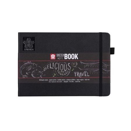 Скетчбуки Sakura с черной бумагой – удобный формат для художников, иллюстраторов, дизайнеров, архитекторов и всех тех, кто находится в поиске новых идей и обожает творческие эксперименты. Компактный формат позволяет брать его с собой куда угодно, будь то деловая встреча или прогулка.На черную бумагу очень приятно ложится масляная пастель, цветные и угольные карандаши, гелевые ручки, акрил и даже акварель. Этот скетчбук также прекрасно подойдет для смешанных техник. Светлые оттенки на контрасте с черным фоном дают графичность и выразительность.Насыщенный черный цвет бескислотной высококачественной бумаги обеспечен технологией окрашивания бумаги в массе.Благодаря твердой обложке в альбоме легко делать заметки и скетчи даже на ходу. Лента-ляссе всегда поможет художнику быстро найти нужную страницу. Фиксирующая резинка предохраняет от случайного открытия. Держатель для карандаша обеспечивает готовность сделать запись или эскиз в любой момент. В конце блокнота есть бумажный конверт, в котором удобно хранить фото, референсы, визитки, наклейки и записки.В Скетчбуке Sakura 80 листов плотностью 140 гр/кв.м. Переплет обложки приятно держать в руке, он напоминает кожу. В правом верхнем углу присутствует логотип-тиснение Sakura. Уголки альбома скруглены и не повредят сумку или карман. Карандаш размещен на фото для ориентира покупателя по размерам блокнота/ежедневника.