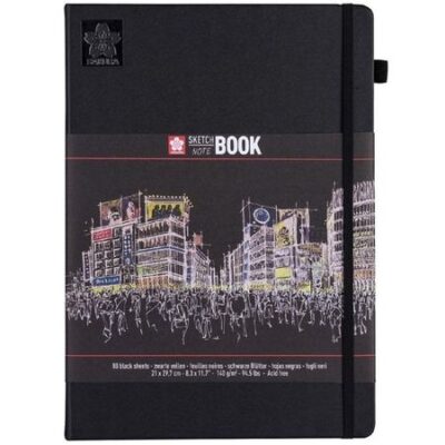 Скетчбуки Sakura с черной бумагой – удобный формат для художников, иллюстраторов, дизайнеров, архитекторов и всех тех, кто находится в поиске новых идей и обожает творческие эксперименты. Компактный формат позволяет брать его с собой куда угодно, будь то деловая встреча или прогулка.На черную бумагу очень приятно ложится масляная пастель, цветные и угольные карандаши, гелевые ручки, акрил и даже акварель. Этот скетчбук также прекрасно подойдет для смешанных техник. Светлые оттенки на контрасте с черным фоном дают графичность и выразительность.Насыщенный черный цвет бескислотной высококачественной бумаги обеспечен технологией окрашивания бумаги в массе.Благодаря твердой обложке в альбоме легко делать заметки и скетчи даже на ходу. Лента-ляссе всегда поможет художнику быстро найти нужную страницу. Фиксирующая резинка предохраняет от случайного открытия. Держатель для карандаша обеспечивает готовность сделать запись или эскиз в любой момент. В конце блокнота есть бумажный конверт, в котором удобно хранить фото, референсы, визитки, наклейки и записки.В Скетчбуке Sakura 80 листов плотностью 140 гр/кв.м. Переплет обложки приятно держать в руке, он напоминает кожу. В правом верхнем углу присутствует логотип-тиснение Sakura. Уголки альбома скруглены и не повредят сумку или карман. Карандаш размещен на фото для ориентира покупателя по размерам блокнота/ежедневника.