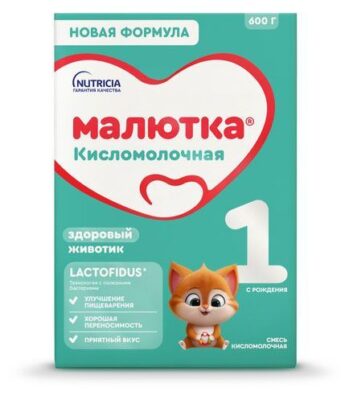 Для новорожденных малышей с легким дискомфортом в животике мы создали кисломолочную смесь Малютка, сочетающую в себе полноценное питание и пользу кисломолочных продуктов: