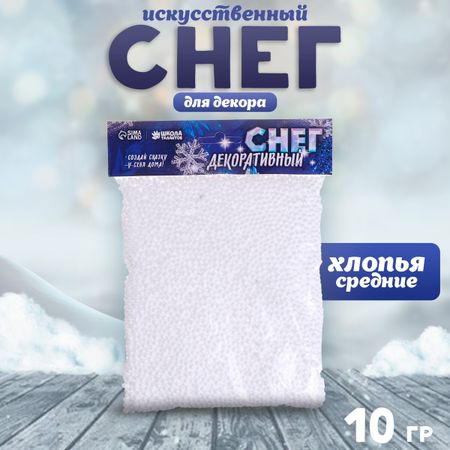 Снег искусственный сыпучий для декора «Хлопья средние» 10 г. Искусственный снег можно использовать для имитации зимнего декора елки или для детского творчества. Снег можно крепить с помощью клея (в комплект не входит).