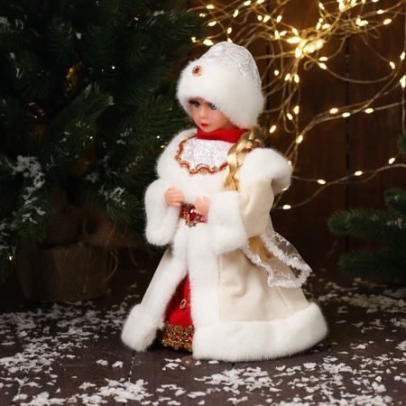 Снегурочка под елку «Зимнее волшебство. В шубке, с ремешком и косой» двигается, 30 см, бежевый. Снегурочка «В шубке с ремешком и косой» — это мягкий и динамичный акцент для новогоднего убранства. Фигурка высотой 30 см выполнена в бежевом цвете, дополнена ремешком и косой, обладает подвижными элементами и разработана в духе датского дизайна — решение для тех, кто ценит свет, форму и атмосферу праздника без излишней вычесленности. <b> Особенности</b> <ul> <li> Персонаж — Снегурочка, образ ожидания чуда и семейного тепла, подходящий для любого новогоднего декора.</li> <li> Тематика — Новый год, где важны не детали, а общий ритм и доброжелательность предпраздничных дней.</li> <li> Цвет — бежевый, создающий ощущение мягкости, покоя и уюта в оформлении елки или интерьера.</li> <li> Подвижность — фигурка двигается, добавляя композиции движения и жизни в статичное пространство у елки.</li> <li> Стиль — скандинавская простота и датский минимализм в одной форме, легко сочетающейся с разным типом убранства.</li> </ul> <b> Праздник начинается с одного взгляда на Снегурочку</b> Эта фигурка делает елку частью вашей личной зимней истории. Бежевые тона и мягкие линии работают вместе с подвижными деталями, чтобы передать атмосферу ожидания подарков и семейного уюта. Используйте ее как центральный акцент или фоновое дополнение — одинаково хорошо усиливает дух торжества и доброжелательность дома.