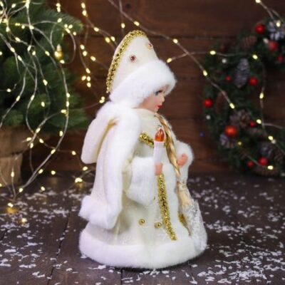 Главная » Товары для детей Снегурочка под елку Просмотров 4 Снегурочка под елку «Зимнее волшебство. В шубке с бусинками и в кокошнике» двигается, с подсветкой, 30 см, золото. Зимнее волшебство