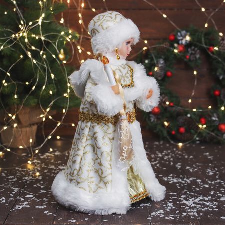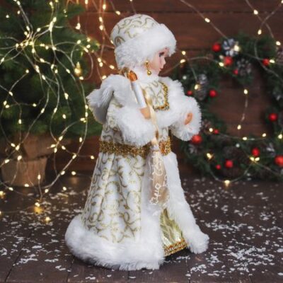 Главная » Товары для детей Снегурочка под елку Просмотров 4 Снегурочка под елку «Зимнее волшебство. В шубке с орнаментом» двигается, с подсветкой, 40 см, золото. Зимнее волшебство