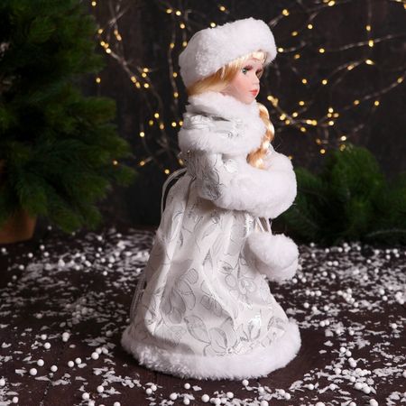 Главная » Товары для детей Снегурочка под елку Просмотров 5 Снегурочка под елку «Зимнее волшебство. В муфте с меховыми бомбошками», 33 см, серебристо-белый. Зимнее волшебство