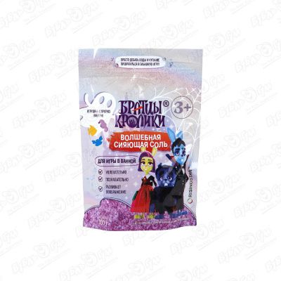 Соль для ванны Братцы Кролики волшебная сияющая розовая 300г с 3лет