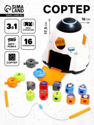Логический сортер «Космическая ракета» разработан специально для малышей от 2 лет. Игрушка не только развлечёт ребёнка — с ней можно осваивать новые навыки! Занятия с сортером помогут малышу потренировать логическое мышление, моторику, внимание и память.Как игратьПодбирайте геометрические формы фигурок к правильным отверстиям. Изучайте основные цвета и цифры.Угадывайте фигурки на ощупь через отверстие.Нанизывайте элементы на шнурок в определённой последовательности.Собирайте из блоков разные фигуры, следуя схемам на коробке.Когда малыш научится определять и сортировать геометрические фигуры и цифры, усложняйте процесс, придумывая новые задания.Особенности сортераВ комплект входят 16 деталей разной формы и цветов.Яркие цвета привлекают внимание ребёнка.Сортер и детали выполнены из гипоаллергенного безопасного пластика.На фигурах изображены красочные картинки с изображением космоса и цифр.Чтобы достать фигуры, нажмите на ракету сверху, и дверка откроется.