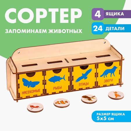 Деревянный сортер «Запоминаем животных» — это увлекательная настольная игра для детей от 3 лет, которая помогает изучать окружающий мир, развивать внимание, логику и мелкую моторику. В комплекте элементы в виде животных, которые нужно правильно разместить на игровой панели.ОсобенностиИзготовлен из натурального дерева, что делает его безопасным, экологичным и долговечным.Яркие изображения животных привлекают внимание малышей, стимулируя интерес к игре и обучению.Простая механика: ребёнок подбирает элементы по форме и помещает их в соответствующие отверстия, развивая координацию движений.Компактный размер идеально подходит для игр дома или в детском саду.Подходит для мальчиков и девочек, дополняя развивающую среду функциональными акцентами.Чем полезен этот сортер«Запоминаем животных» помогает ребёнку освоить важные навыки: различать формы, развивать логическое мышление и внимание. Играя с элементами, малыш учится выполнять последовательные действия, тренирует память и усидчивость. Задачи по сортировке стимулируют воображение и фантазию, а также способствуют развитию базовых представлений об окружающем мире через знакомство с животными. Это не только занимательное занятие, но и источник новых знаний, которые формируют базовые когнитивные навыки. Каждый этап игры стимулирует самостоятельность и уверенность в своих силах.