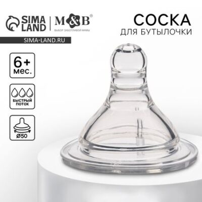 Соска на бутылочку M&B «Baby 1», антиколиковая, широкое горло Ø50 мм., от 6 мес., быстрый поток