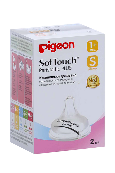 Соска Pigeon СофТач Перистальтик Плюс силик д/бутылочки отверст S (с 1 мес), 2 шт