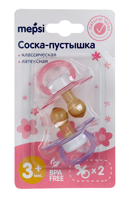 Соска-пустышка Мепси классич/латекс сиреневый/розовый (с 3 мес), 2 шт