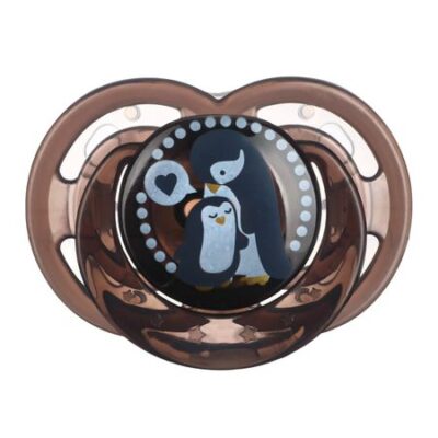 Соска — пустышка силиконовая ортодонтическая M&B «Пингвинчик», от 6 мес., с колпачком, черный. Соска-пустышка со скошенным латексным соском предназначена для детей с рождения. Форма нагубника с симметрично расположенными отверстиями обеспечивает свободную циркуляцию воздуха для предотвражения появления опрелостей. Указанный возраст является рекомендованным и зависит от индивидуальных особенностей развития ребенка. кольцо для клипсы-держателя отверстия в нагубнике для циркуляции воздуха скошенный латексный сосок не содержит бисфенол-А (BPA free) Материалы: полипропилен (PP), латекс Использование в микроволновой печи: Только стерилизация Срок службы: 30 дней.