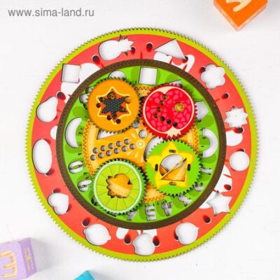 Спирограф ― многофункциональная игрушка для развития навыков рисования. Она состоит из 2 зубчатых колёс с фигурными трафаретами и 5 кругов-шестерёнок. Игрушка имеет яркое оформление с тематическими изображениями.Использовать трафарет очень просто. На листе бумаги расположите зубчатое колесо, в него поместите один круг. В одном из отверстий круга зафиксируйте кончик пишущего предмета (ручка, карандаш, фломастер и т.д.) и начните совершать вращательные движения. На бумаге появится спиралевидный узор.Используя различные пишущие принадлежности и отверстия кругов, можно получить множество рисунков.Занятия со спирографом развивают внимание, память, мышление, тренируют координацию движения и моторику рук, воспитывают терпение, усидчивость, любознательность и познавательную активность. Деревянный спирограф благотворно влияет на формирование творческих способностей малыша.
