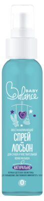 Восстанавливающий спрей-лосьон заметно улучшает состояние кожи и мгновенно успокаивает ее. Экстракт ромашки, пантенол и оливковое масло подавляют воспалительные реакции, усиливают способность кожи к регенерации и восстанавливают ее барьерную функцию. Состав разработан на основе пребиотика и ферментативного овса для минимизации риска проявления кожных проблем у малышей с рождения. Восстанавливающий спрей-лосьон не содержит силиконов, красителей, парабенов и минерального масла. Гипоаллергенно и рекомендовано дерматологами с первых дней жизни.