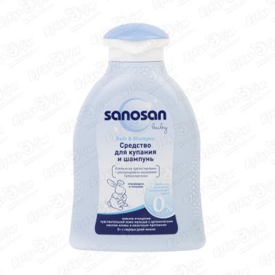 Средсво SANOSAN baby для купания+шампунь с маслом оливы и молочным протеином 200мл с 0мес
