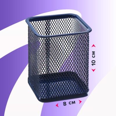 Стакан для пишущих принадлежностей, квадратный, металлическая сетка, синий. <b> Практичная и долговечная металлическая подставка — органайзер предназначена для хранения различных канцелярских принадлежностей.</b> <li> Изготовлена из металлической сетки.</li> <li> Состоит из одного отделения.</li> <li> Мягкие подушечки на дне предотвращают скольжение и порчу мебели.</li> <li> Поставляется без канцелярского наполнения.</li> Подставка — органайзер поможет организовать пространство на рабочем столе. <b> Приобрести товар можно в нашем интернет — магазине.</b>