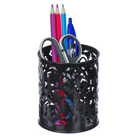 Главная » Товары для детей Стакан для ручек, круглый, Просмотров 2 Стакан для ручек, круглый, «Узор», черный. Долговечная металлическая подставка предназначена для хранения различных канцелярских принадлежностей. Calligrata