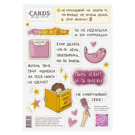 Главная » Товары для детей Стикерпак Cards for you and me С тобой все так Просмотров 4 Виниловые наклейки. Размер листа А5. Республика