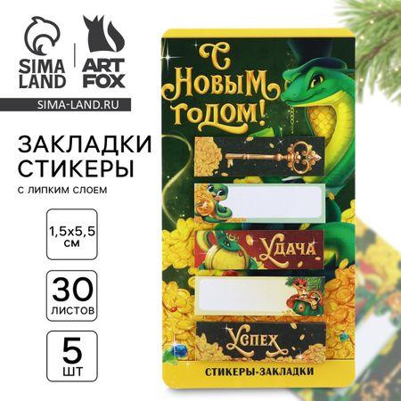 Стикеры для заметок, с липким краем, 30 листов, 5 шт. «С Новым годом! Символ года». Стикеры-закладки станут прекрасным подарком на праздник. <ul> <li> Размер, см:1,5 х 5 ;</li> <li> Форма: прямоугольник ;</li> <li> Количество листов: 30 ;</li> <li> Упаковка: пакет.</li> </ul> Состав: бумага, картон.
