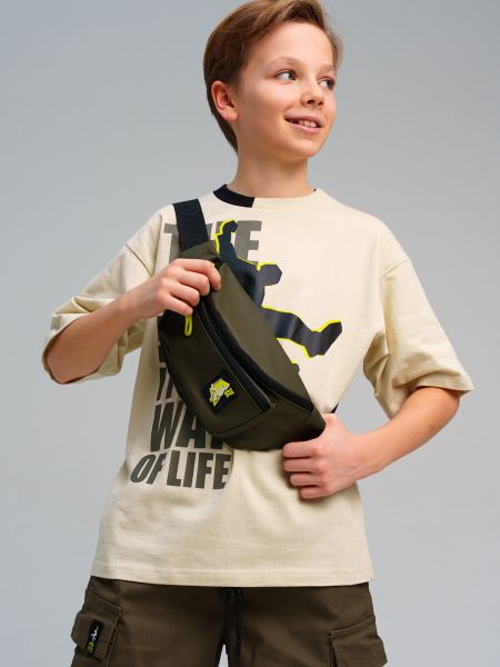 Трендовая поясная сумка для мальчика-подростка в цвете хаки. Текстильный материал с ПУ покрытием имеет водоотталкивающий эффект. Регулируемый брендированный ремень. Основной отсек на молнии, спереди дополнительный карман на молнии. Внутри есть карман на молнии. Параметры: высота — 14 см, ширина -30 см, глубина — 8 см.