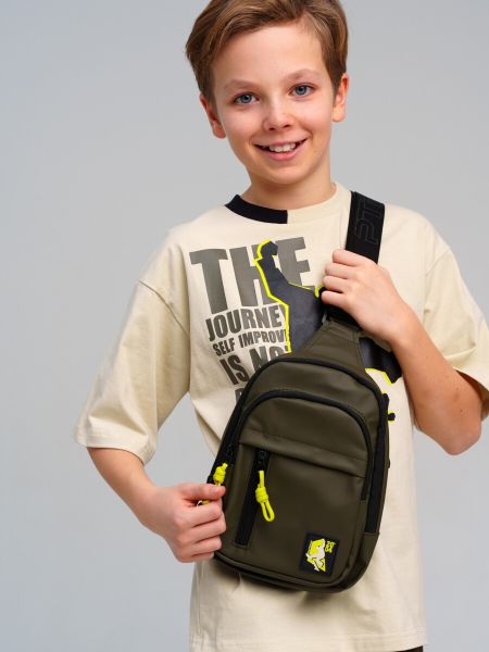 Трендовая сумка кросс-боди для мальчика-подростка в цвете хаки. Текстильный материал с ПУ покрытием имеет водоотталкивающий эффект. Регулируемый брендированный ремень. Используется брендированная подкладка. Основной отсек на молнии, спереди дополнительный большой карман на молнии и маленький карман на молнии для транспортной карты. Внутри есть карман для телефона. Параметры: высота — 24 см, ширина -16,5 см, глубина — 6 см.